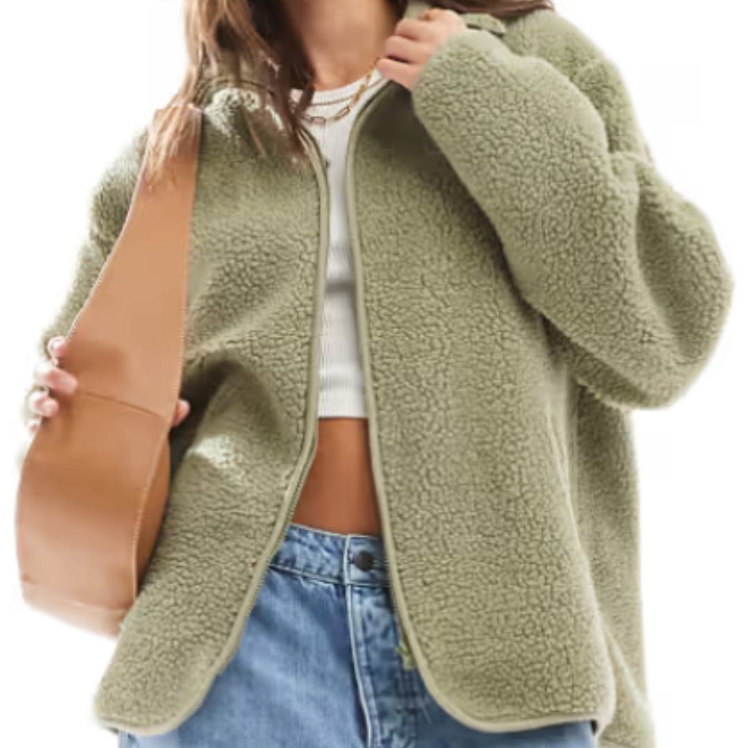Sage green has been everywhere this year, and it’s not going anywhere during autumn! This borg zip-through fleece is the ultimate in cozy chic. With its soft, teddy-like texture and zip-through design, it’s perfect for casual autumn days when you want to stay warm without sacrificing style. The sage hue is subtle and soothing, making it a great option for those who prefer softer tones while still embracing the green trend.