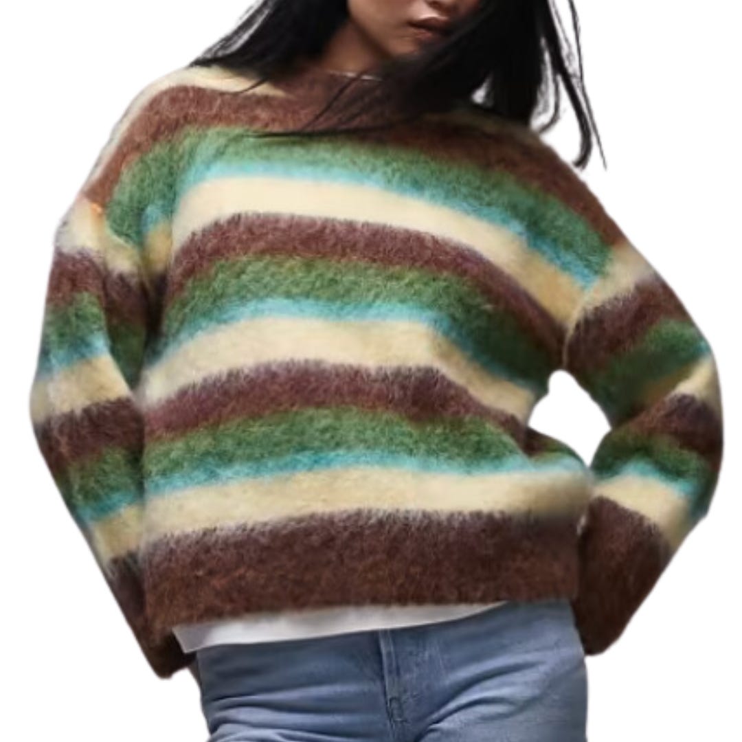 Topshop Knitted Fluffy Stripe Relaxed Jumper in Multi