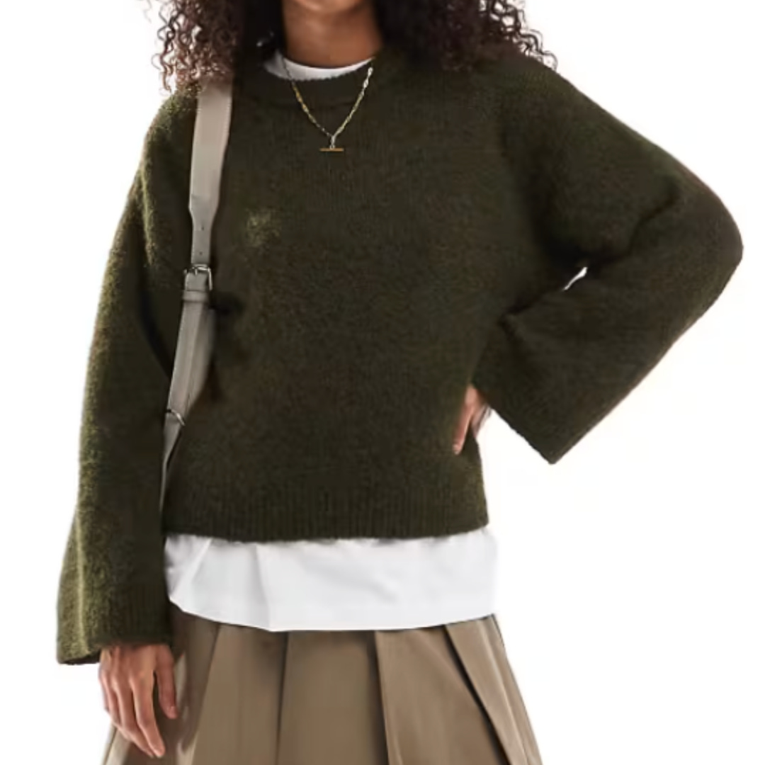 For those who love a touch of luxury, this wool-blend jumper is an autumn essential. The rich forest green shade is both on-trend and timeless, offering a deeper tone that echoes the seasonal hues of nature. Its fluffy texture and wide sleeves bring a playful yet sophisticated touch, making it ideal for dressing up or down. Pair it with a midi skirt or your favorite jeans for a look that’s as comfortable as it is stylish.