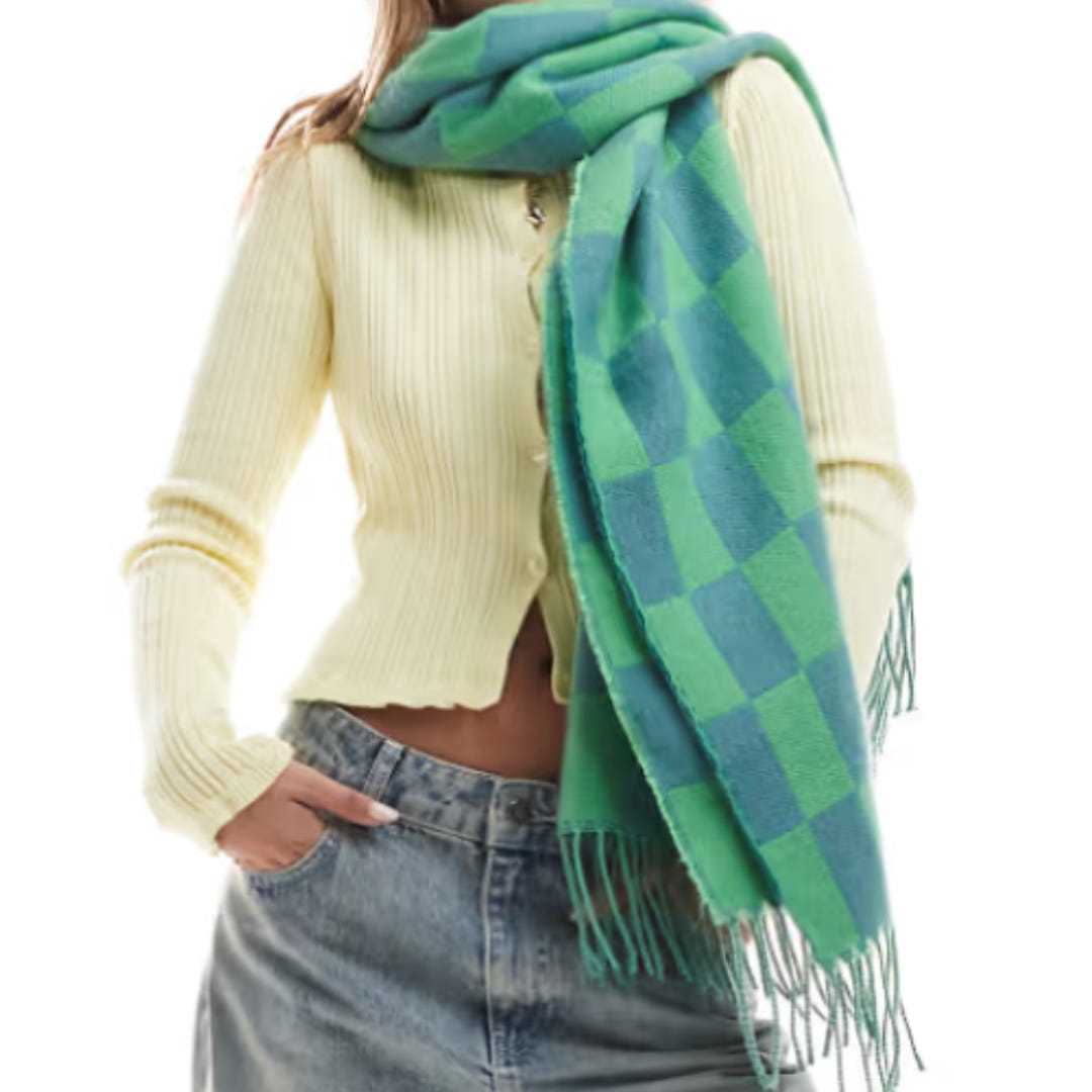 No autumn outfit is complete without the perfect accessory, and this checkerboard scarf from Accessorize delivers just that. The green and blue combo is both vibrant and playful, adding a pop of pattern to your ensemble. Whether you’re wrapping it around your neck on a windy day or draping it over your shoulders for a chic layering moment, this scarf is the finishing touch your autumn wardrobe needs.