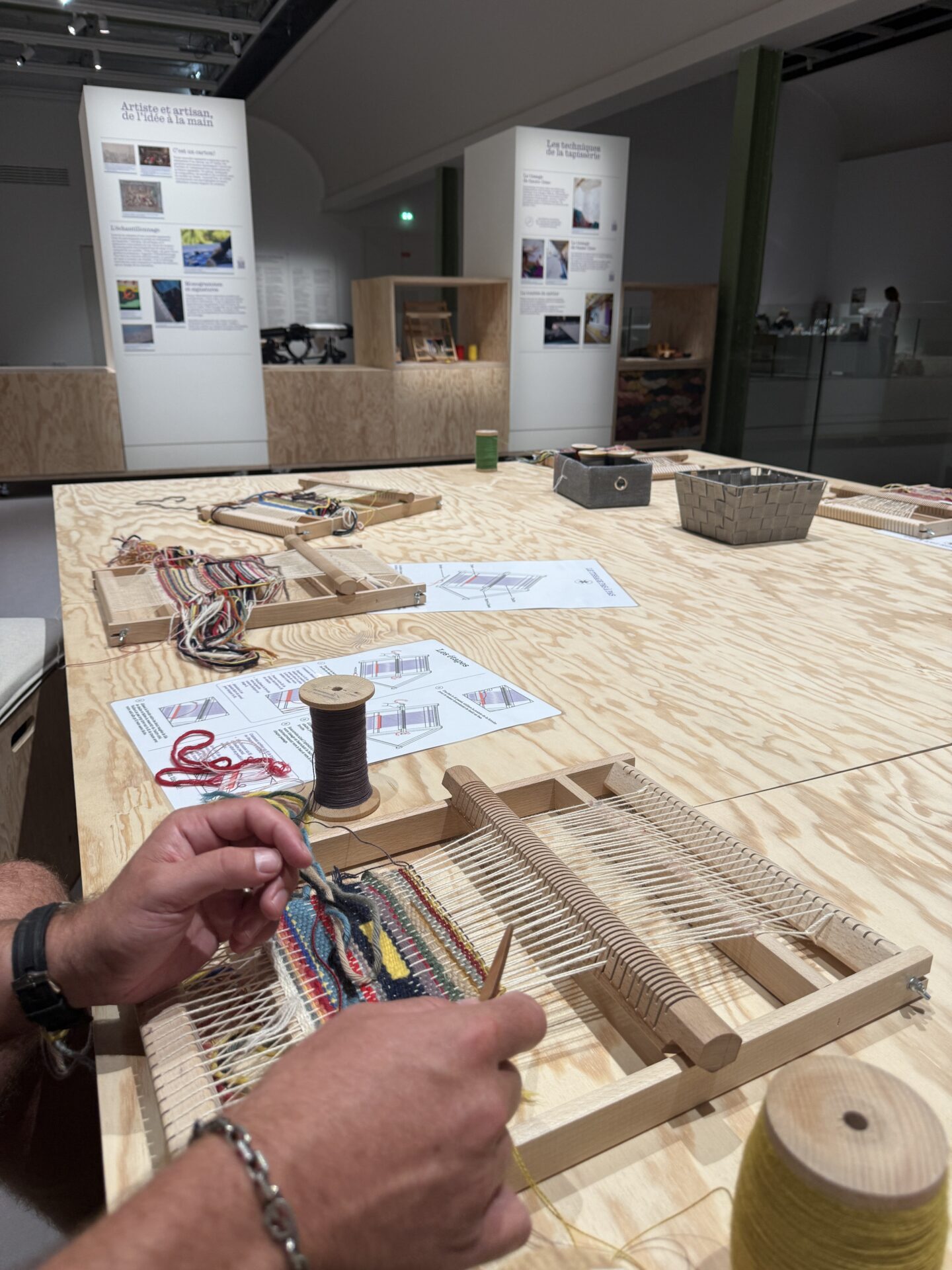 One of our favourite parts of the exhibition was that you could actually try tapestry making yourself, and we both sat for a while trying it out on a mini tapestry which was so fun and really therapeutic, and it made us both want to try making something at home.